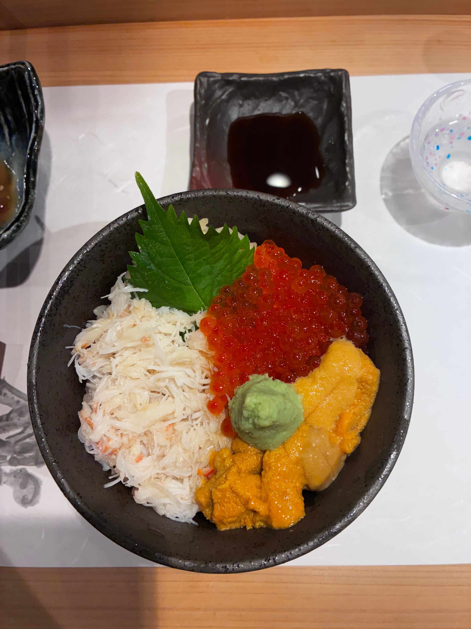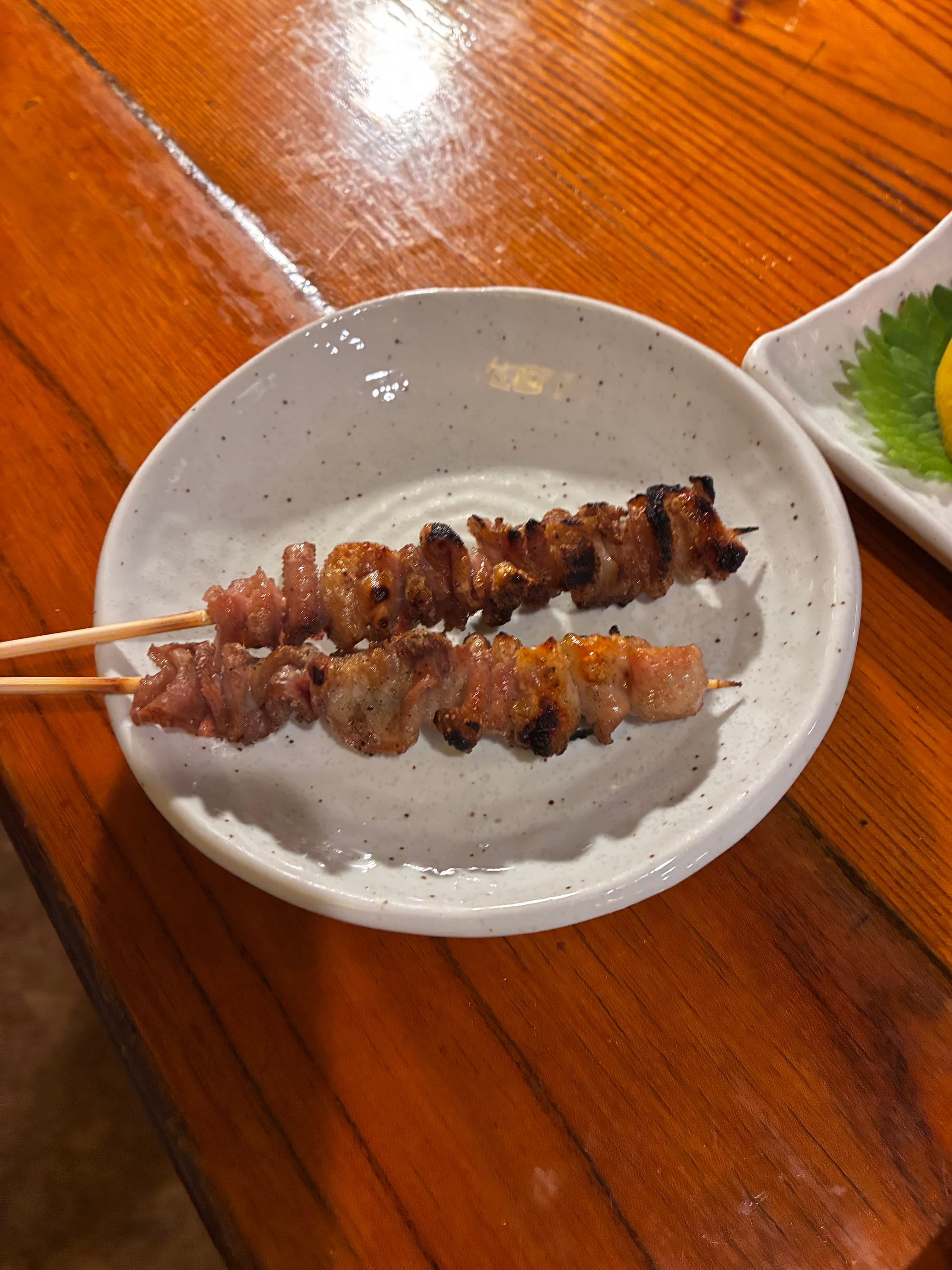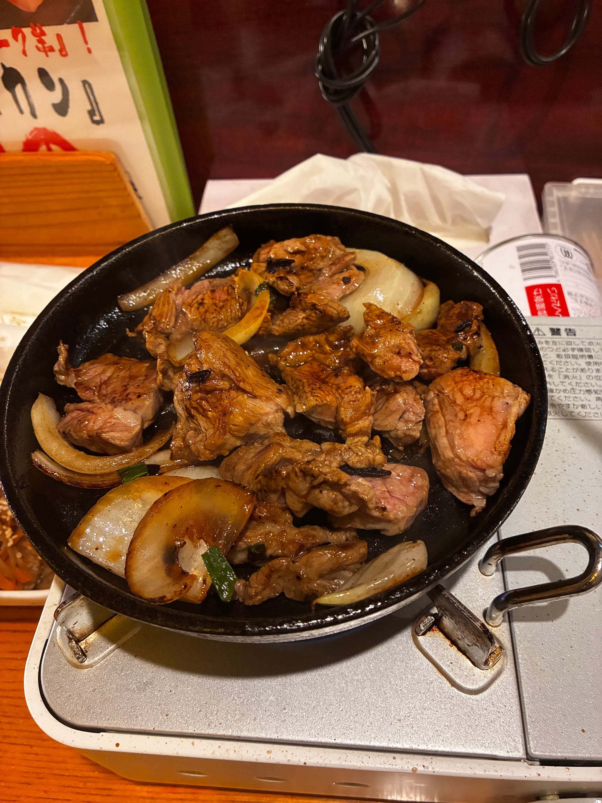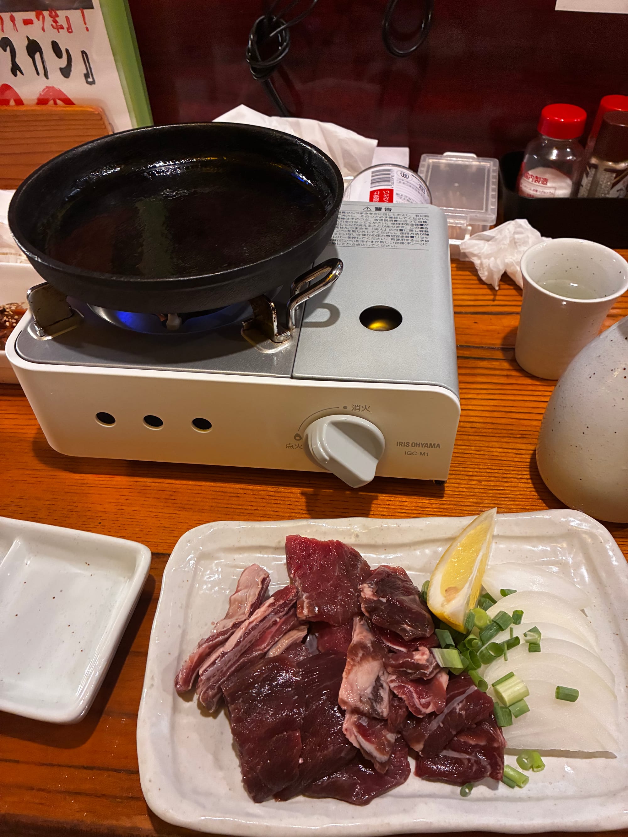在酒店楼下看到家做烤串和铁板烧肉的. 叫了海胆刺身, 烤蘑菇和鸡皮. 铁板要了鹿肉和羊肉. 烤串味道都很棒. 海胆不如中午的. 鹿肉不知道怎么评价, 可能是我没烤好? 或者熟度掌握有问题? 羊肉倒是还行.