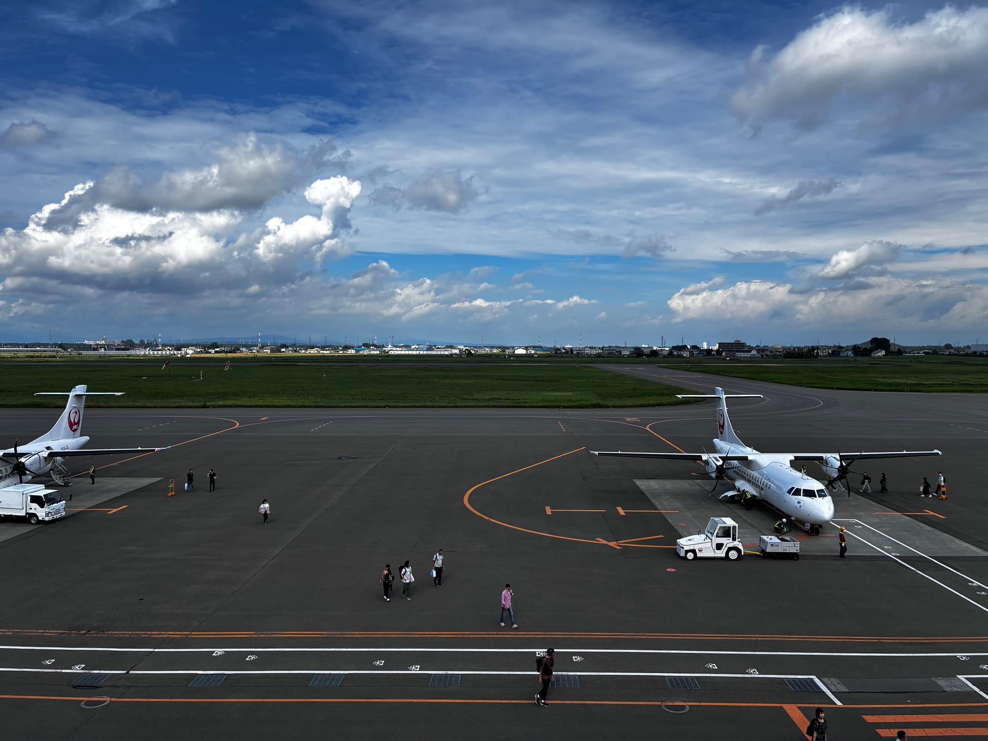 三楼展望台看出去, 就是这些支线ATR42. 下客, 然后上客或者回机库. 隔壁还有陆自的航空队? 几个破直升机吵得不得了. 在展望台看到他们带着噪音缓缓飞走, 忘记拍了.