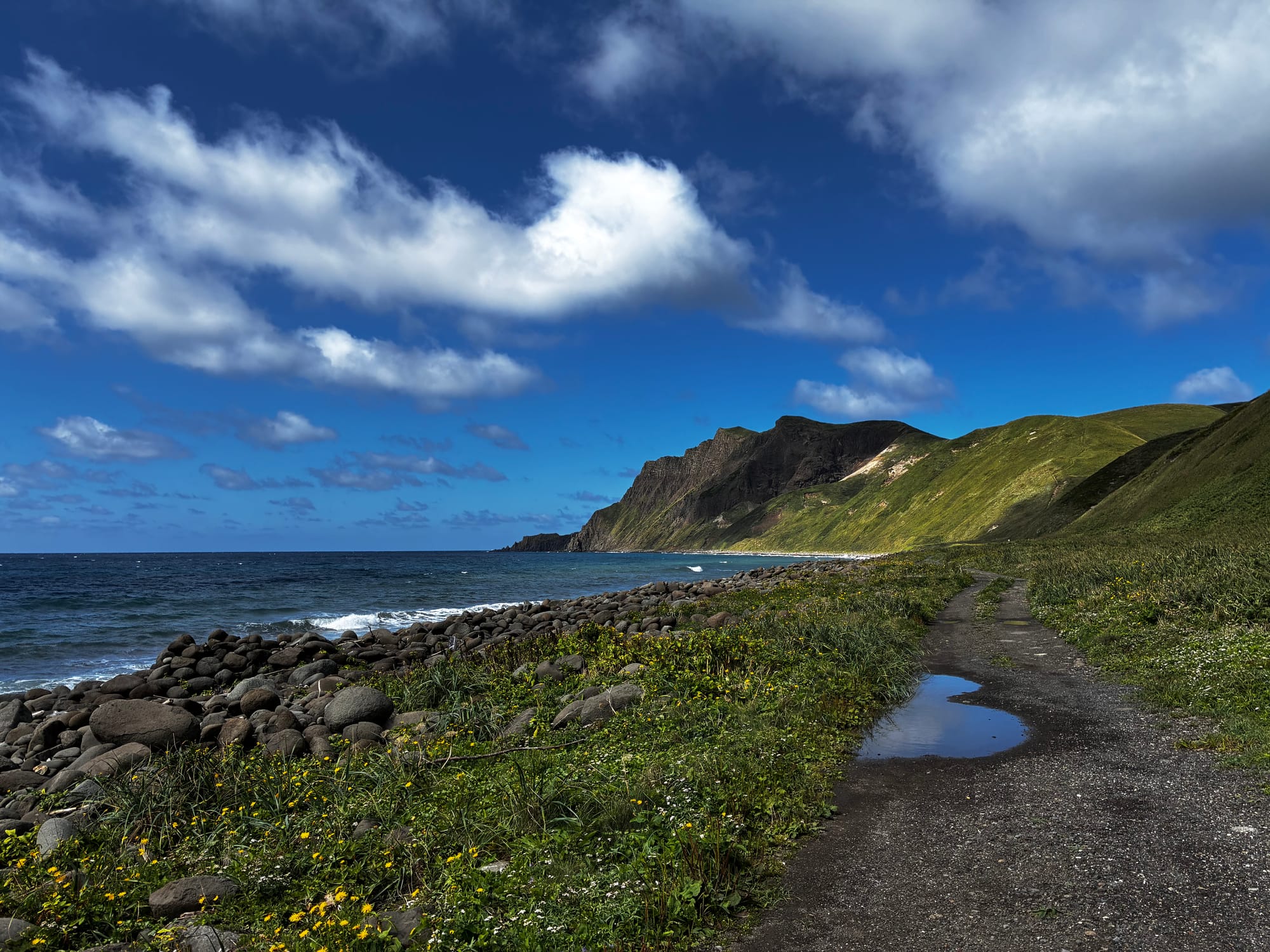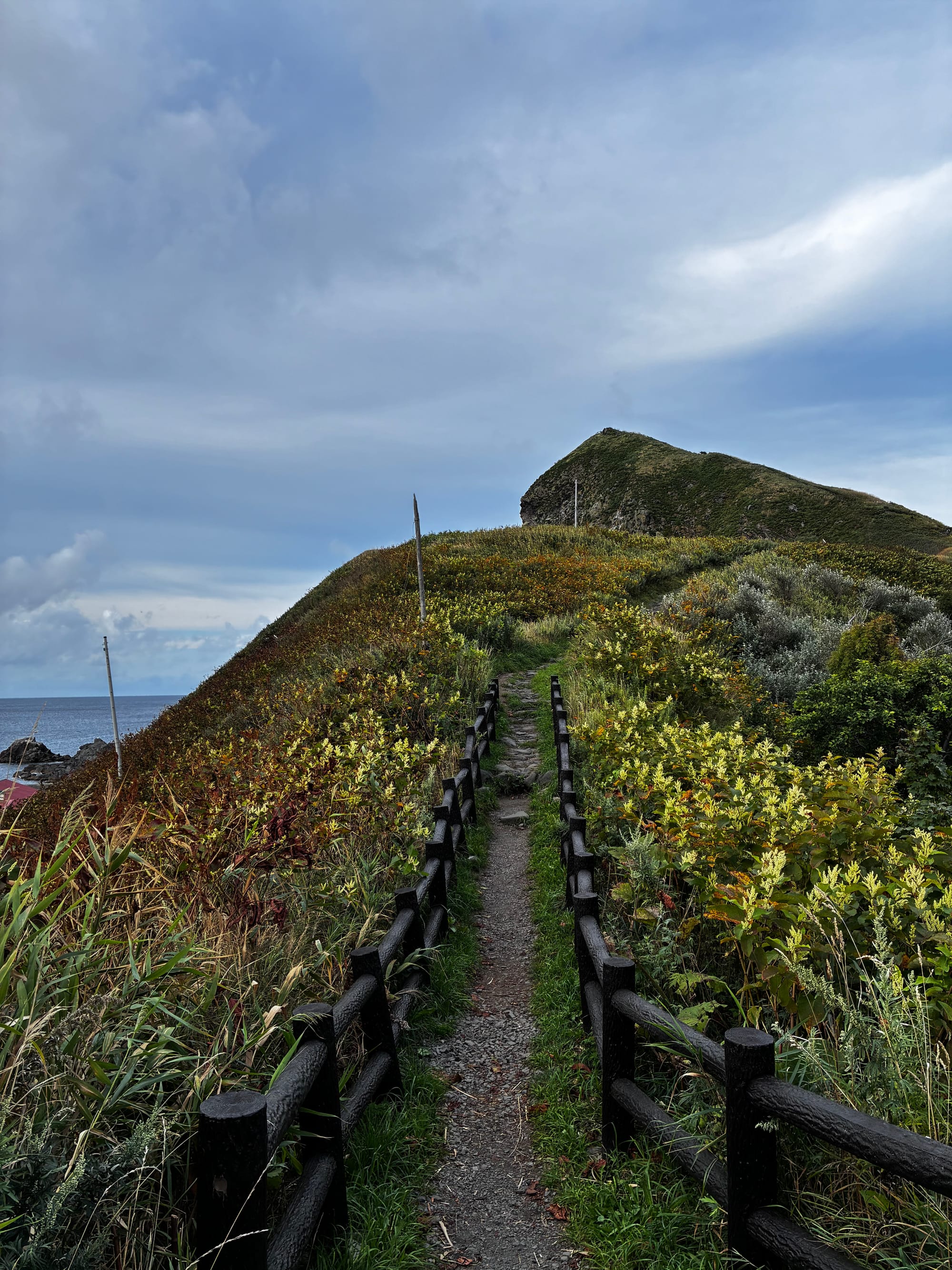 整个峡湾course没什么让我觉得特别出彩的地方. 可能是季节不对. 毕竟礼文岛被称为花之浮岛. 如果早来一个月或者两个月, 应该情况就很不一样了. 虽然峡湾course是开放的, 但是前阵子的雨的影响还是能很明确的体验到. 就是很多部分还是在蹚泥地. 非常滑. 对于我这种穿个室内训练鞋就出来爬山的来说, 真挺难受的. 下坡时候还滑倒了两次. 得亏没特别严重. 礼文岛的公交不是非常友好. 峡湾course这个方向的话, 一天就五班. 有三班在上午. 第四班从半路出发, 第五班要六点多了. 于是我走到峡湾course终点的时候才两点多. 不可能等四个小时, 那就只能沿着路往回走一段. 到医院那站, 有一班四点的. 依然非常离谱. 而且这地方很偏, 不会有路过的出租车, 如果要叫车需要打电话. 但是20公里的路程. 结合之前在利尻叫车的经验, 怎么不得25,000yen起步? 还是老老实实等车.