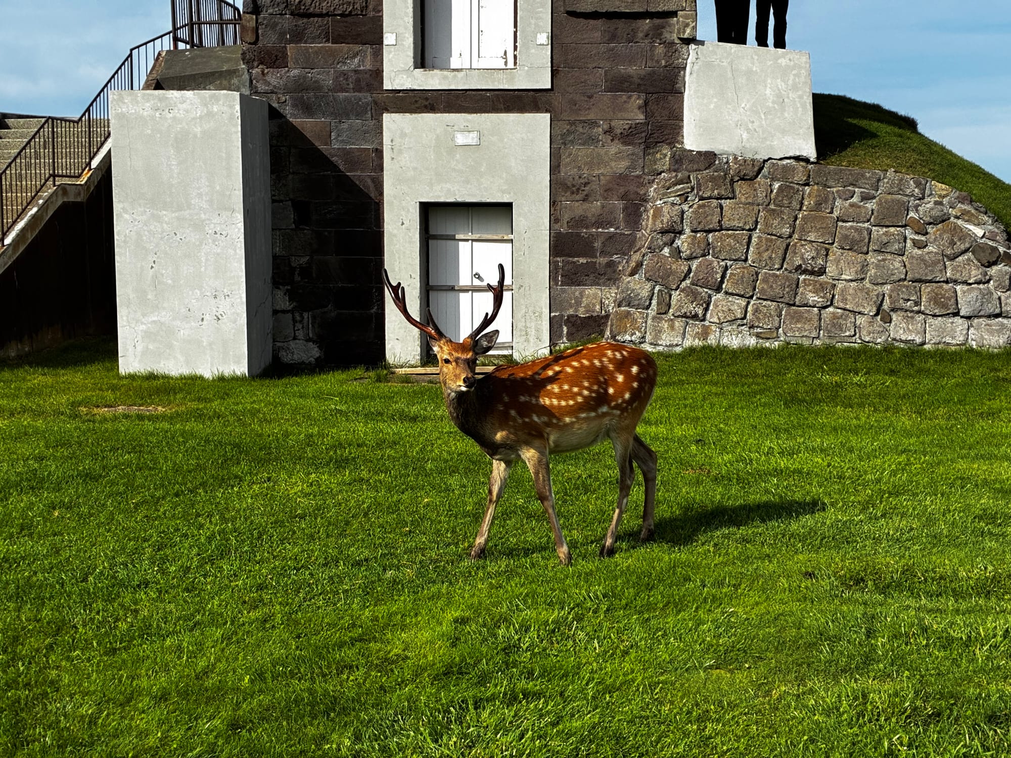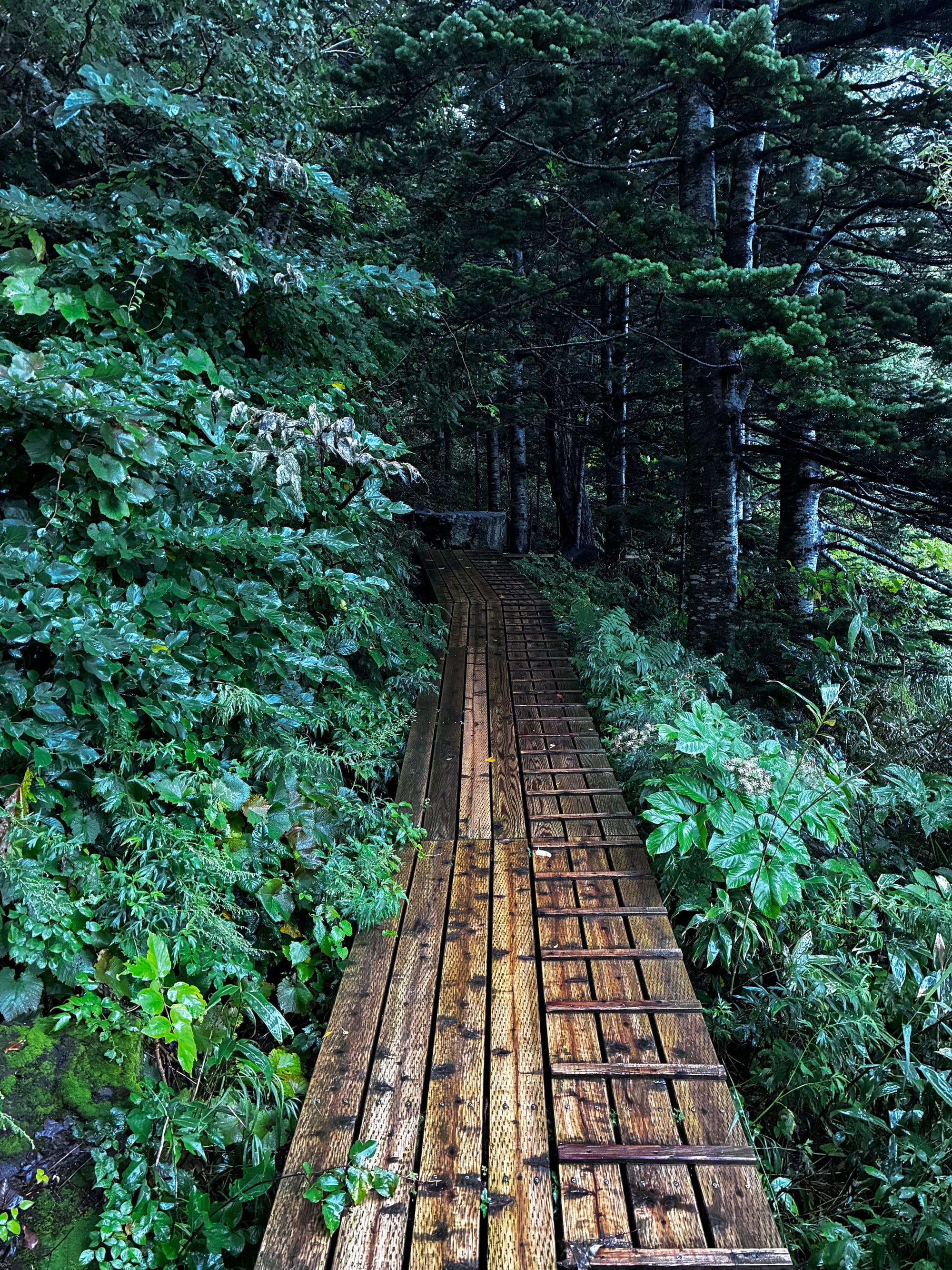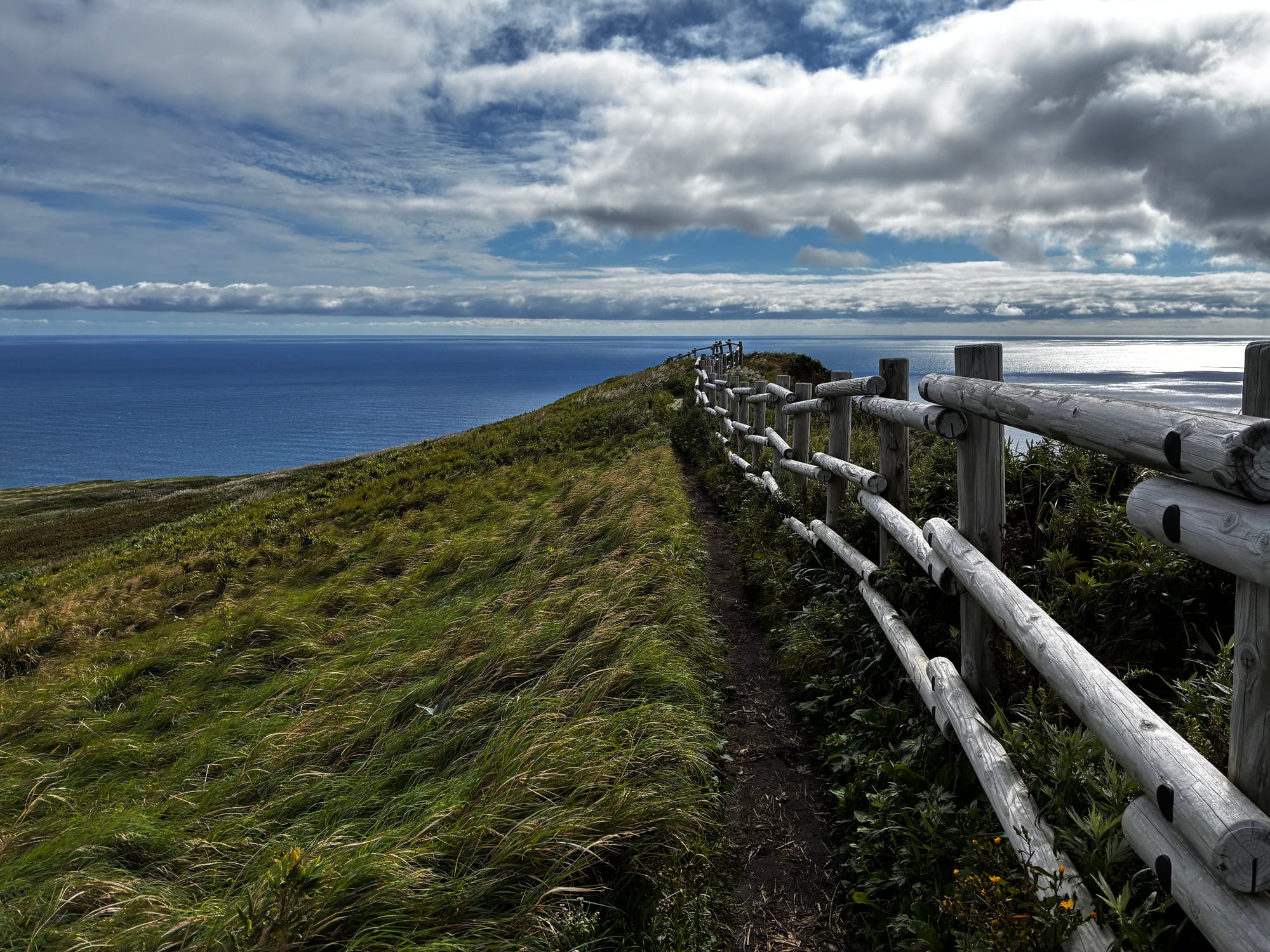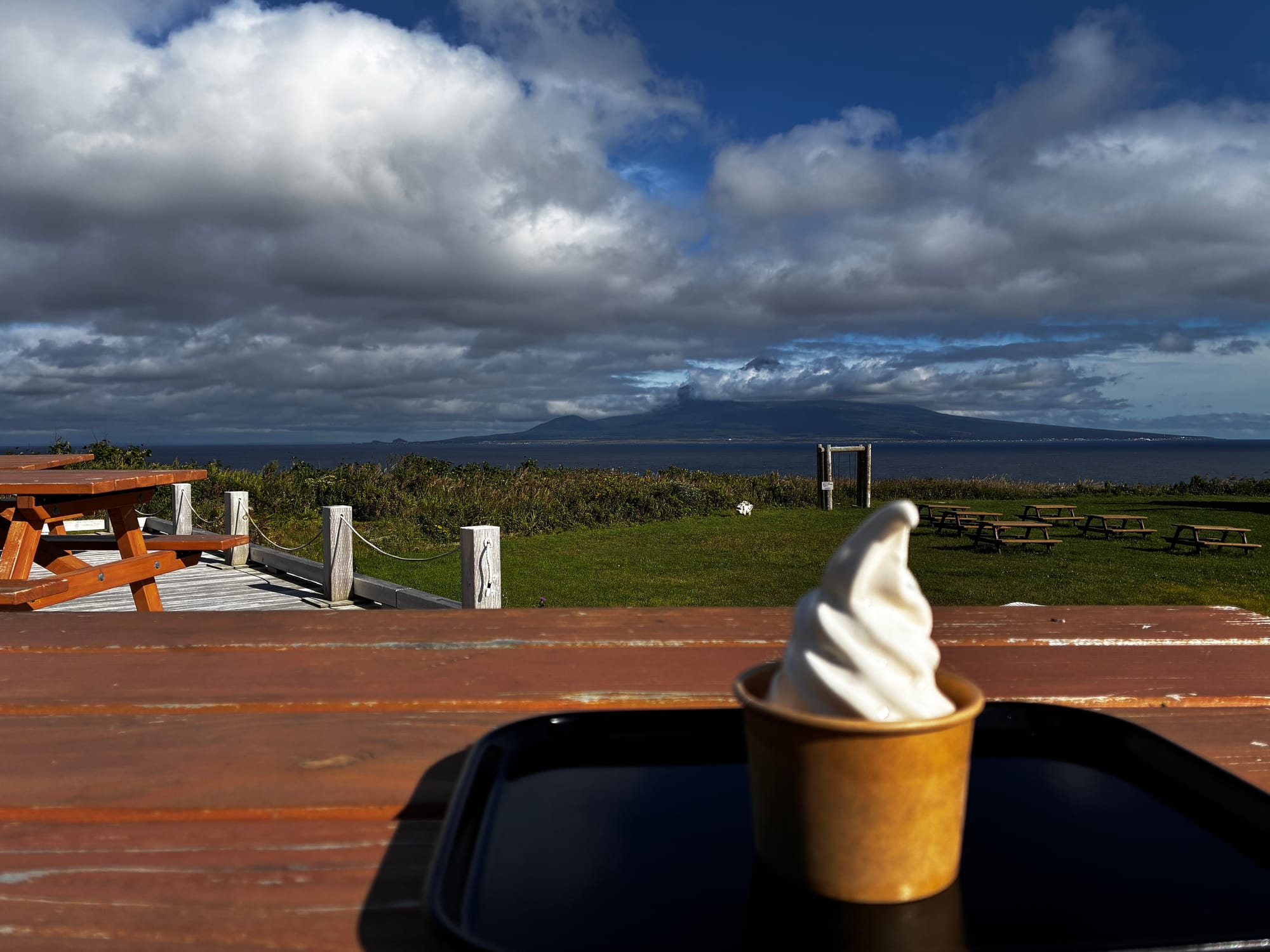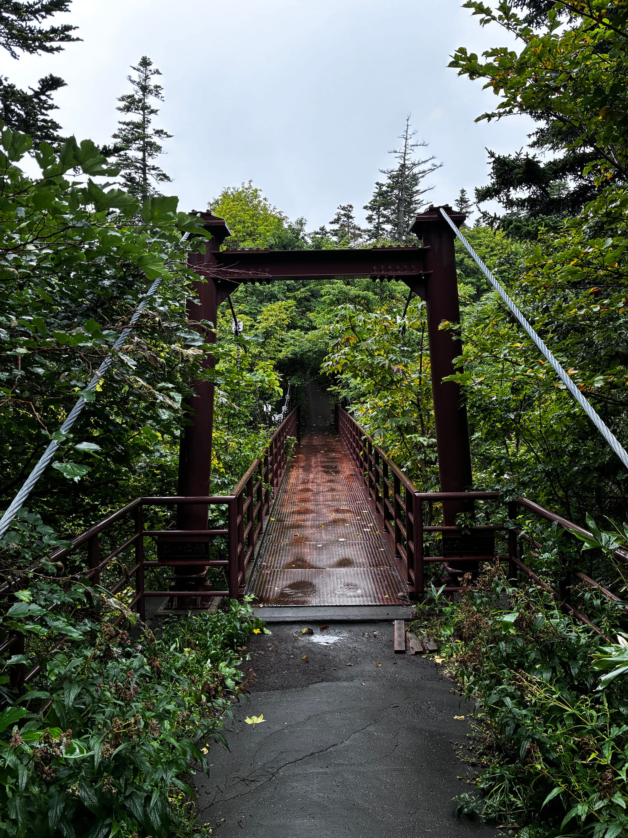 嗯, 本来的话呢, 桃岩线是要求在元地灯台折返的. 因为后续到知床的路有一部分被前阵子的大雨冲毁了. 所以有一段还是挺难走的. 为什么我会知道难走呢, 因为我无视了“closed”的牌子. 这事儿办的很不露脸, 不推荐啊不推荐. 主要是我的体力不足以支撑我再爬回去桃岩. 而知床只有两公里, 还是下坡. 但是确实并不好走. 尤其被冲毁那段碎石路, 非常毁脚踝. 当然到知床之后就好办了. 去了“北方的金丝雀”拍摄的那个公园. 还保留着当时拍时用的校舍. 不过我没进去看. 买了个冰激凌在外面的台子稍微坐了会儿就开始往酒店走.