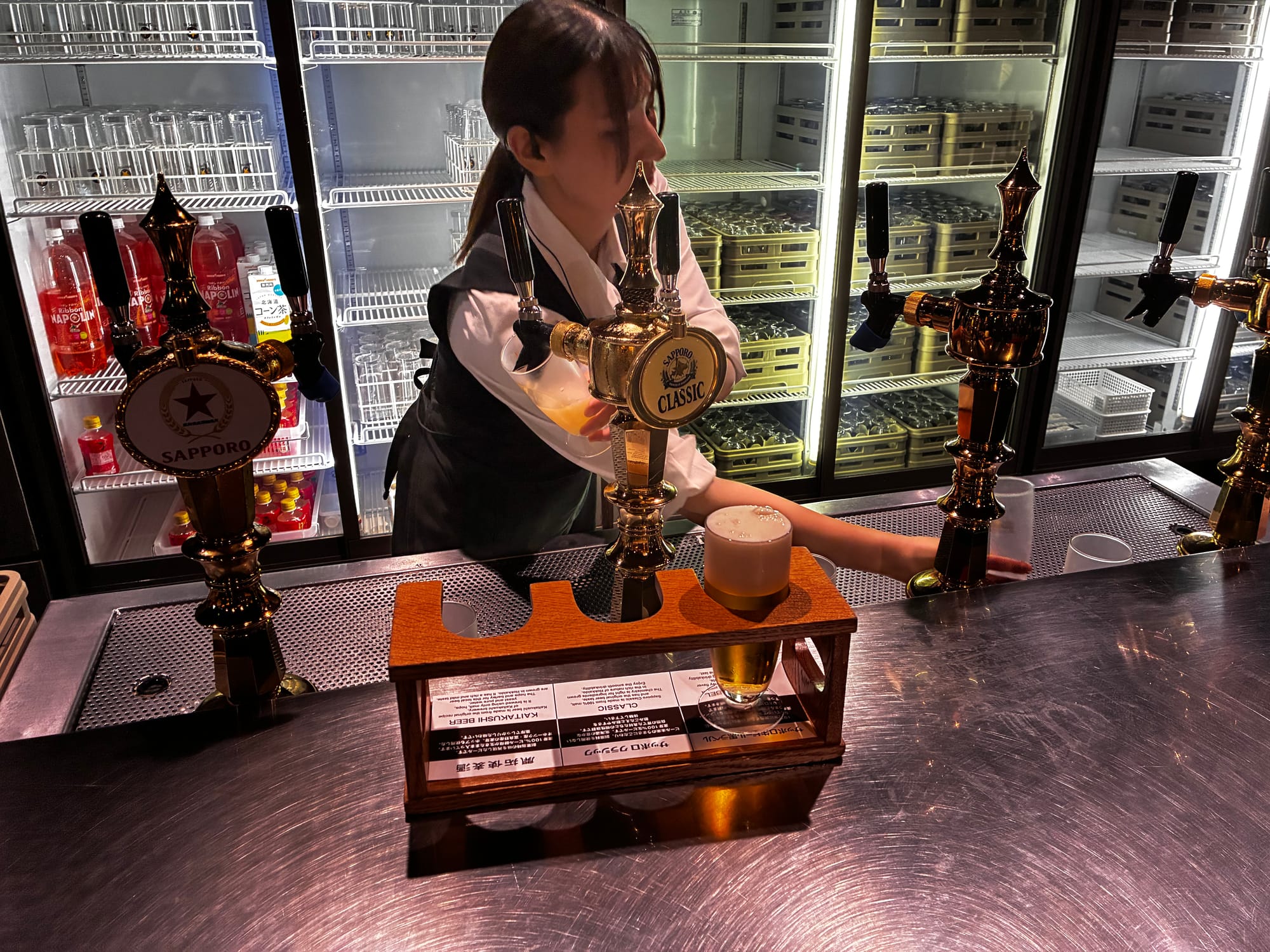 吃完继续往札幌啤酒博物馆走, 倒是走到了, 不过稍微犹豫了一下还是没进去. 一个是拖着箱子很不方便, 一个是时间也确实有点儿紧. 要是见学的时候喝太多等会儿可能不让我登机了. 转方向往地铁站走. 东丰线到底, 栄町, 离丘珠机场就很近了. 直接走过去就行.